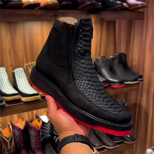 Retro scale pattern thick sole leather boots