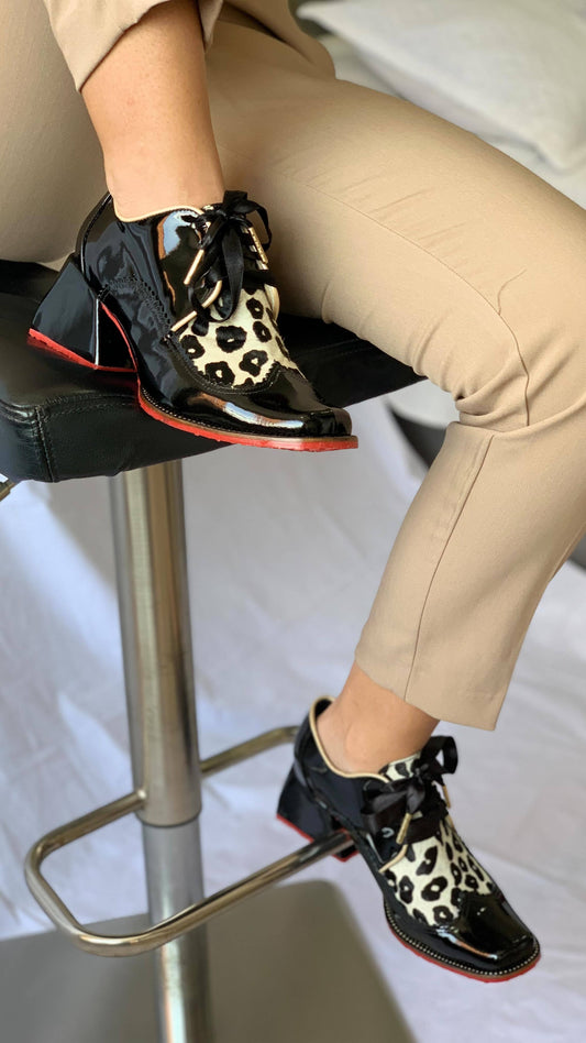 Leopard Print Leather Ankle Boots