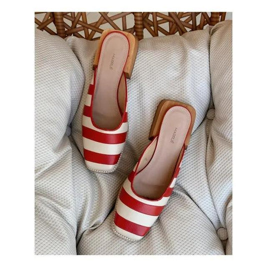 Women's Striped Vintage Block Heel Mules